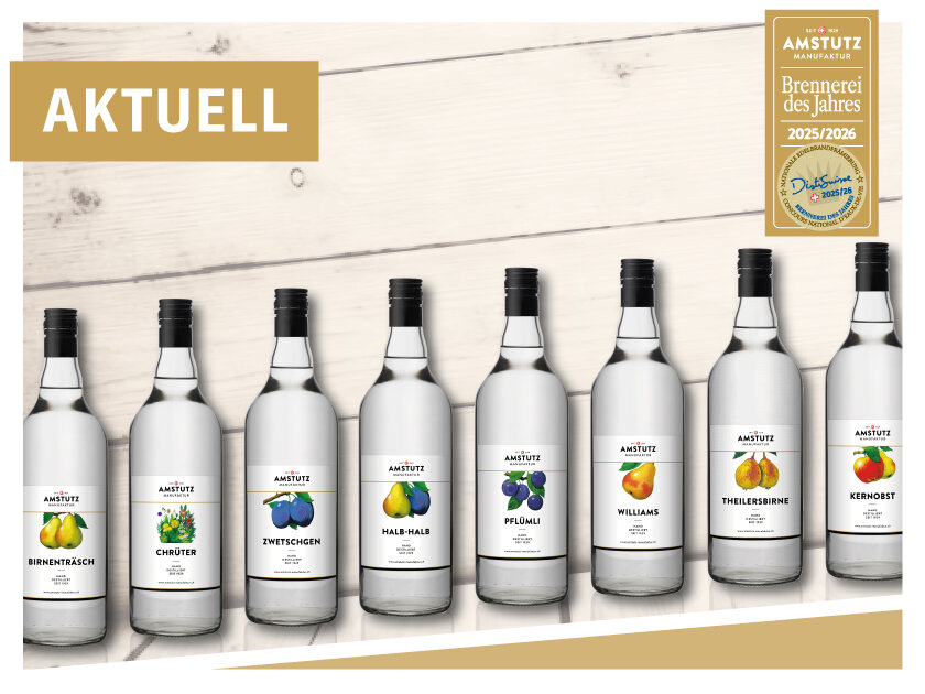 Das Spirituosen-Sortiment der Amstutz Manufaktur umfasst Barrique-Linien, zwei davon in limitierter Auflage, Vieille, Liköre und klare Destillate.